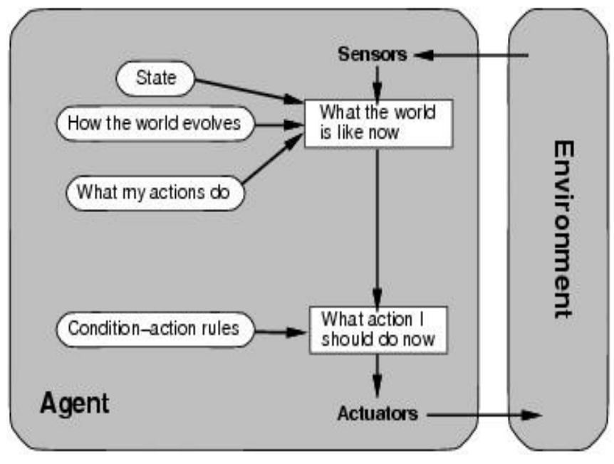 tracks world state + goals, chooses action that leads to goal achievement