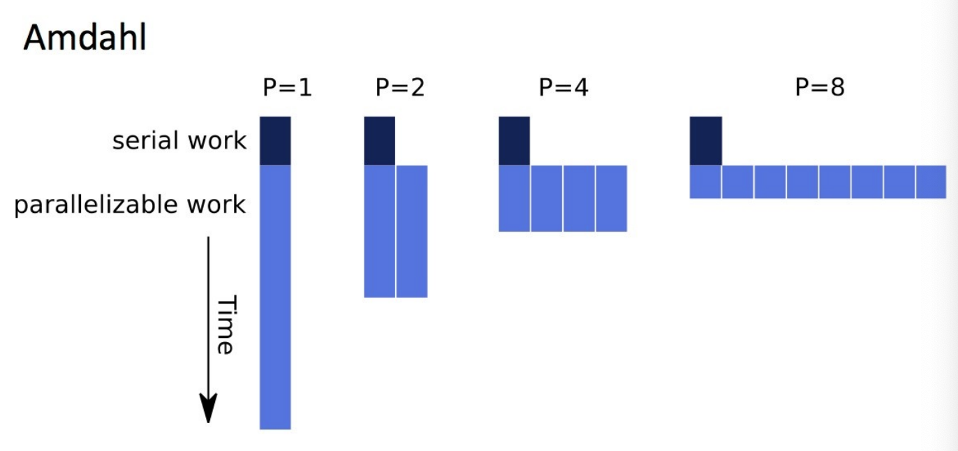 - speedup bound is determined by the degree of sequential execution time in the computation, not # of processors