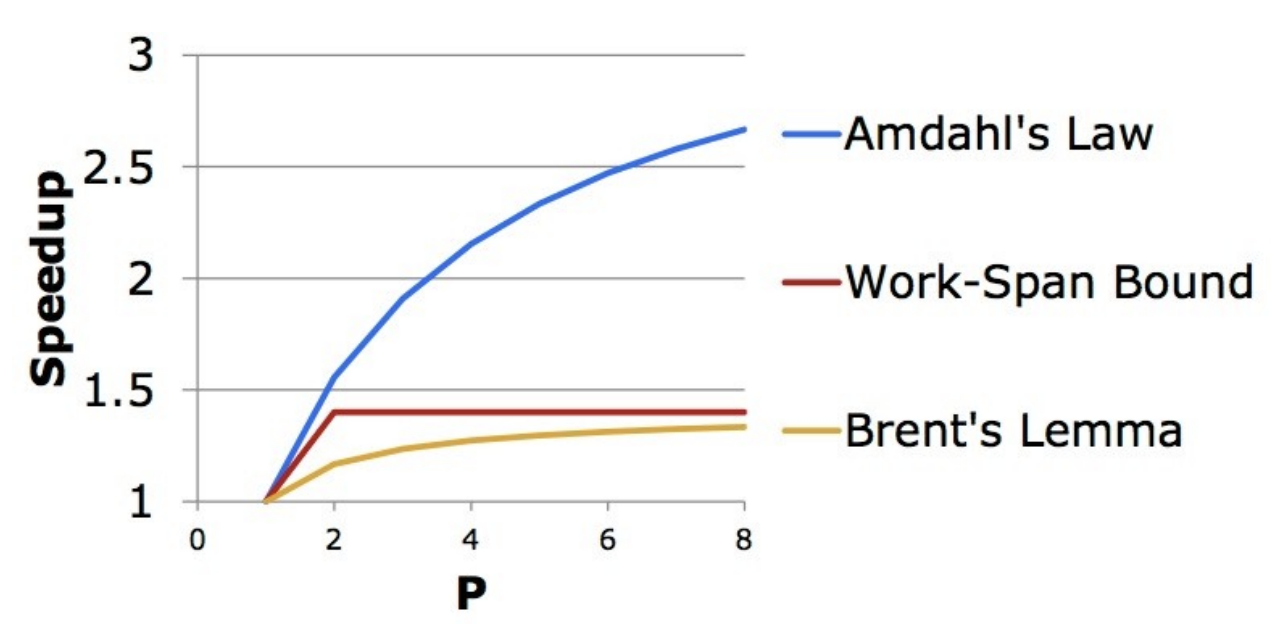 - we can write a work-span formula to derive a lower bound on →