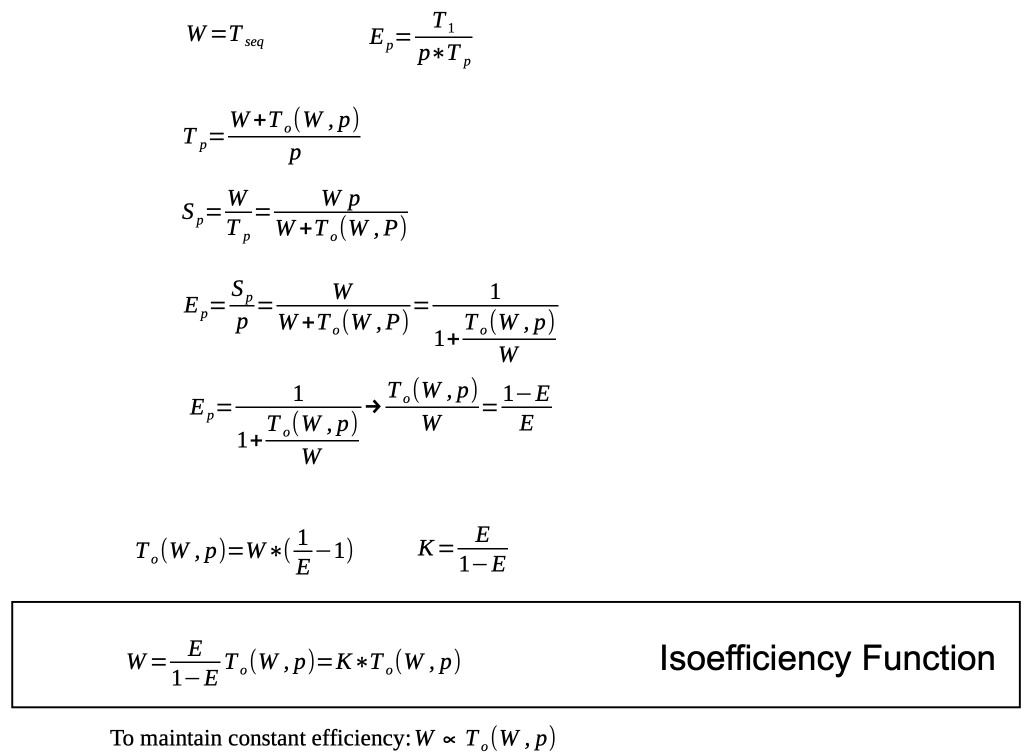 - how the problem size () must increase with the number of processors () to keep the efficiency () constant