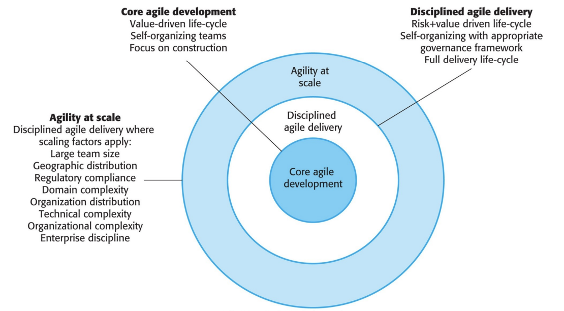 - Large orgs = strict quality procedures & bureaucracy → clash with agile.